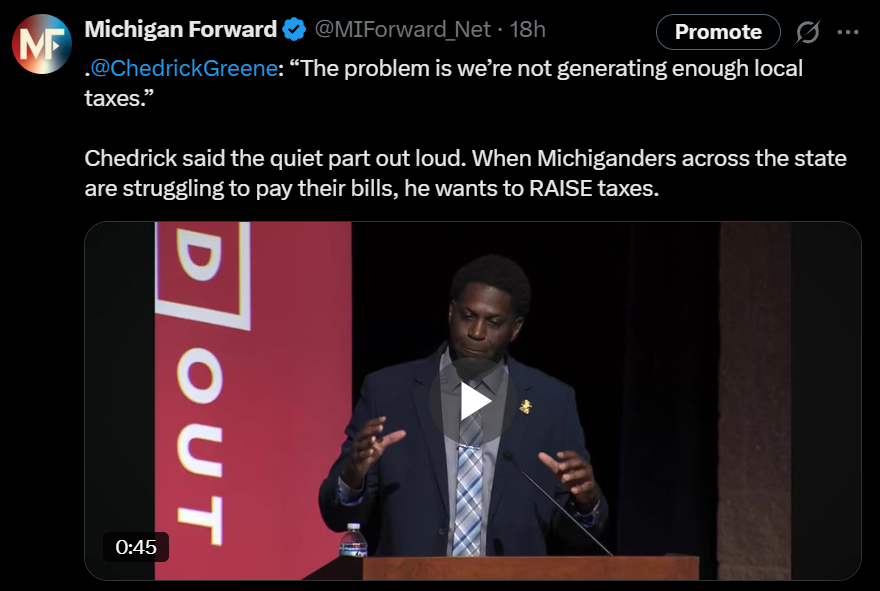 But, in typical Democrat fashion, Greene argued that Michiganders’ taxes are not high enough: