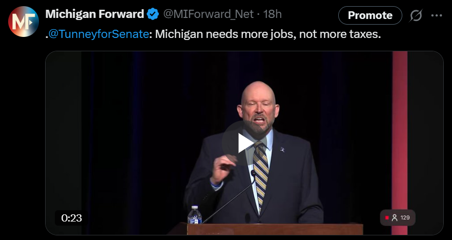 Tunney made the point that Michigan needs more jobs, not more taxes: