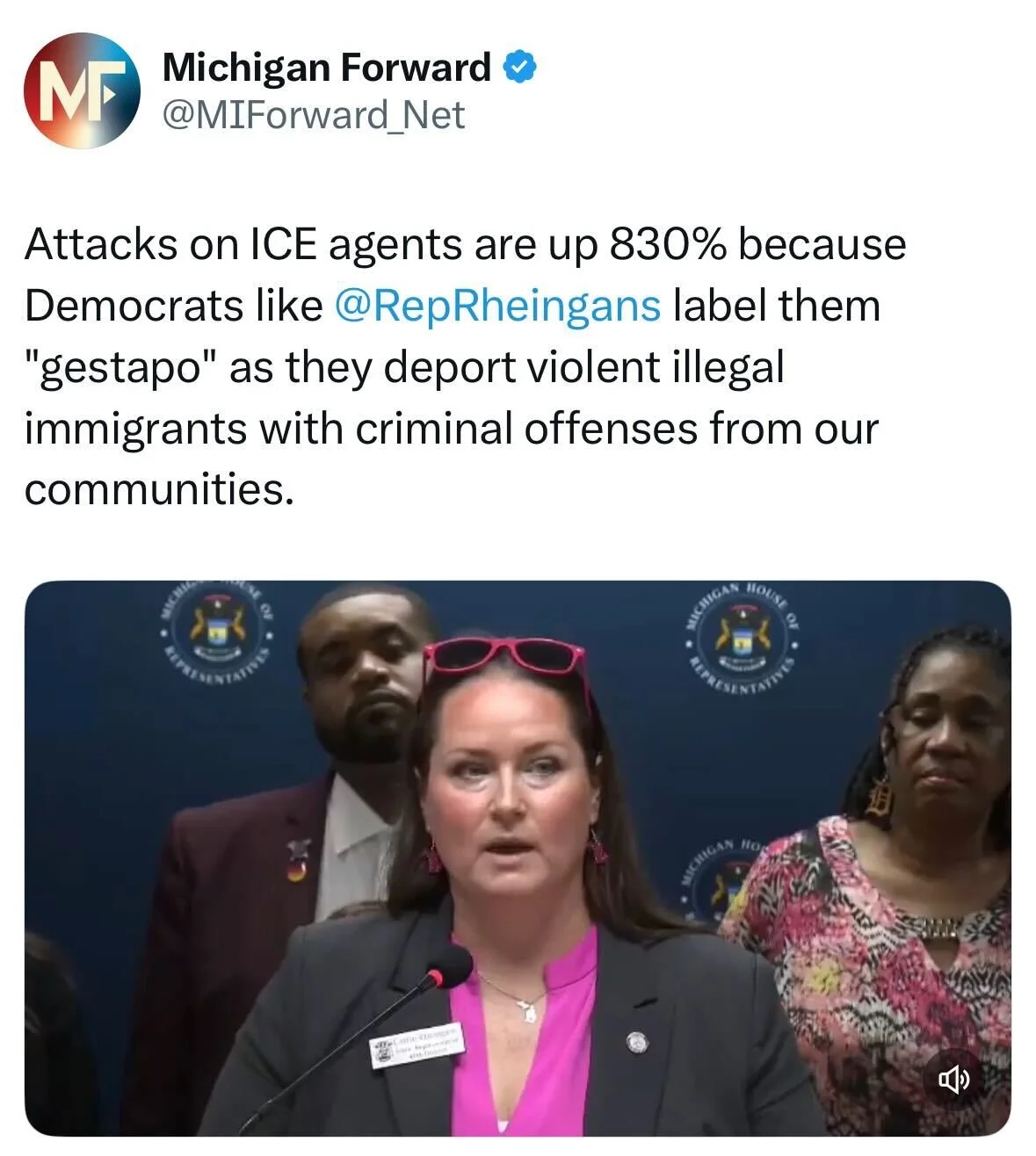 “It looks like Democrats finally found their midterm message: Justice needs no masks, but your children do. Michigan voters spoke loud and clear in 2024: they want government at all levels to crack down on crime and illegal immigration. But Democrats are ignoring the will of the voters, using inflammatory rhetoric to vilify law enforcement who protect our communities,” said Zach Rudat, Spokesperson for Michigan Forward Network.